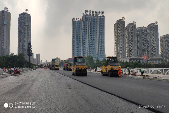 我公司承擔的六安市龍河路橋工程瀝青路面經(jīng)過一天兩夜的艱苦奮戰(zhàn),于6月28日完成主橋面瀝青攤鋪工程,為7月1日順利通車奠定了基礎。