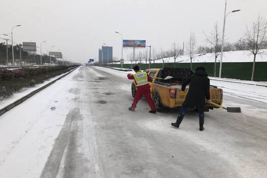 本次鏟冰除雪我公司平均每天投入除雪人員60人次、除雪鏟車6臺(tái)次、積雪轉(zhuǎn)運(yùn)車5臺(tái)次、皮卡車14輛次,共撒鋪融雪劑(工業(yè)鹽)32.5噸、此次鏟冰除雪,公司共計(jì)投入資金約26萬(wàn)元。