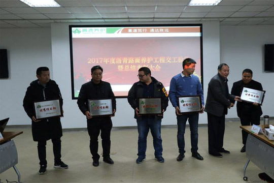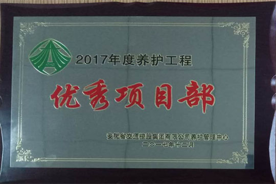 2017年12月14日,2017年度瀝青路面養(yǎng)護工程交工驗收暨總結表彰大會在合肥召開,六安市交通公路實業(yè)有限公司2017-2019年度安徽省部分高速公路瀝青路面專項養(yǎng)護工程03標項目經(jīng)理部榮獲2017年度養(yǎng)護工程”優(yōu)秀項目部“和”安全管理先進單位“稱號。
